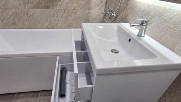 - Умывальник в одном санузле - керамическая раковина со смесителем.
