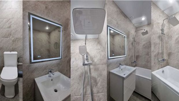В с/у установлен сан.фаянс: душевой поддон или ванна (в зависимости от размера с/у), унитаз, раковина, смесители;