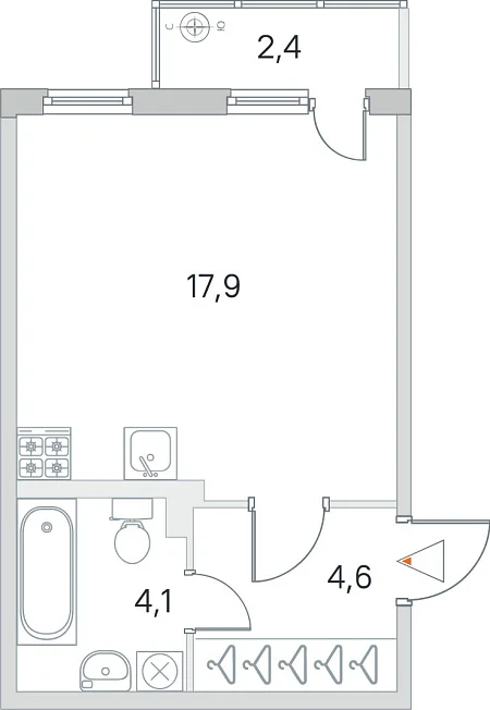 Двухкомнатная квартира №63 в ЖК Новая история 27.82 м.кв. |